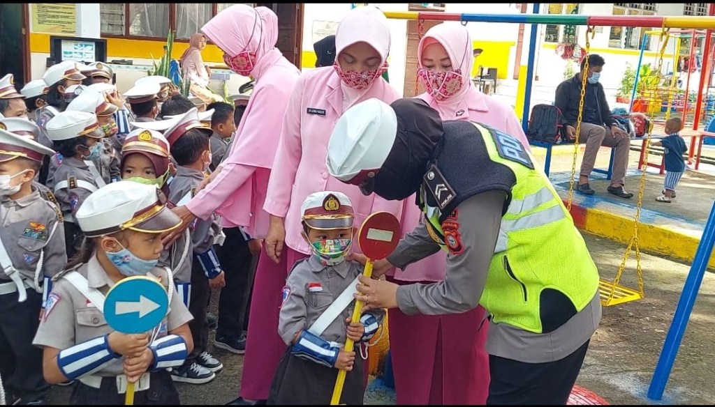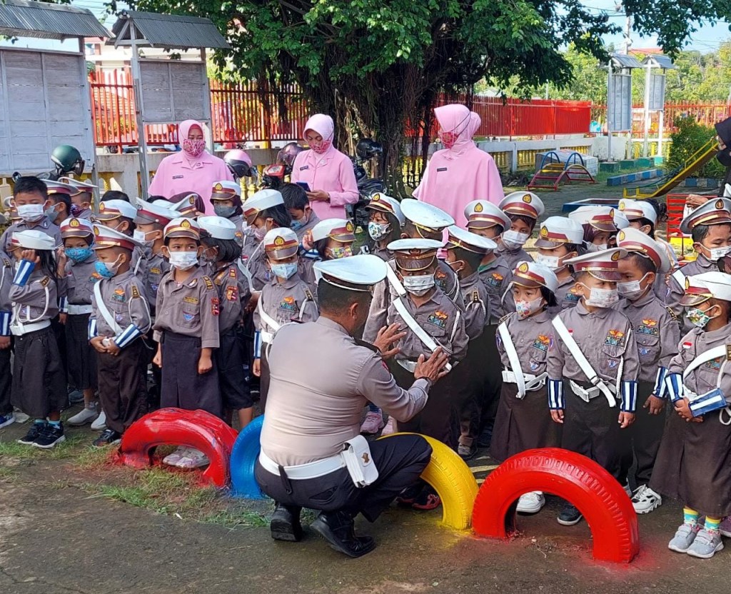 Sinjai – Satuan lalu lintas polres sinjai mengumpulkan puluhan anak Taman Kanak – Kanak (TK) Bhayangkari untuk