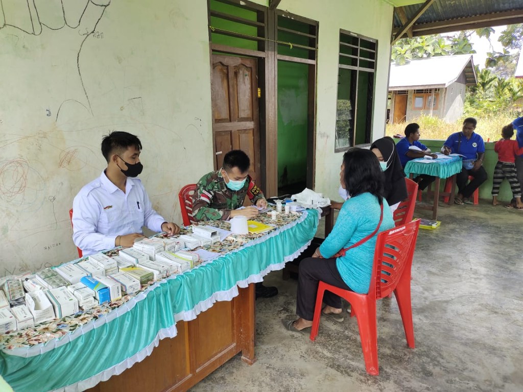 PEDULI AKAN KESEHATAN, PERSONEL SATGAS YONIF 126/KC AJAK WARGA SENAM BERSAMA DAN BERIKAN PENGOBATAN GRATIS