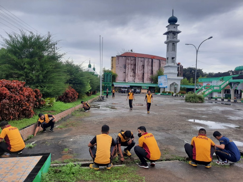 Dalam kegiatan, personel Polres Sinjai bahu membahu membersihkan sampah hingga rumput yang tumbuh liar dihalaman mesjid, dengan harapan agar warga masyarakat yang akan melaksanakan ibadah merasa nyaman dan aman.