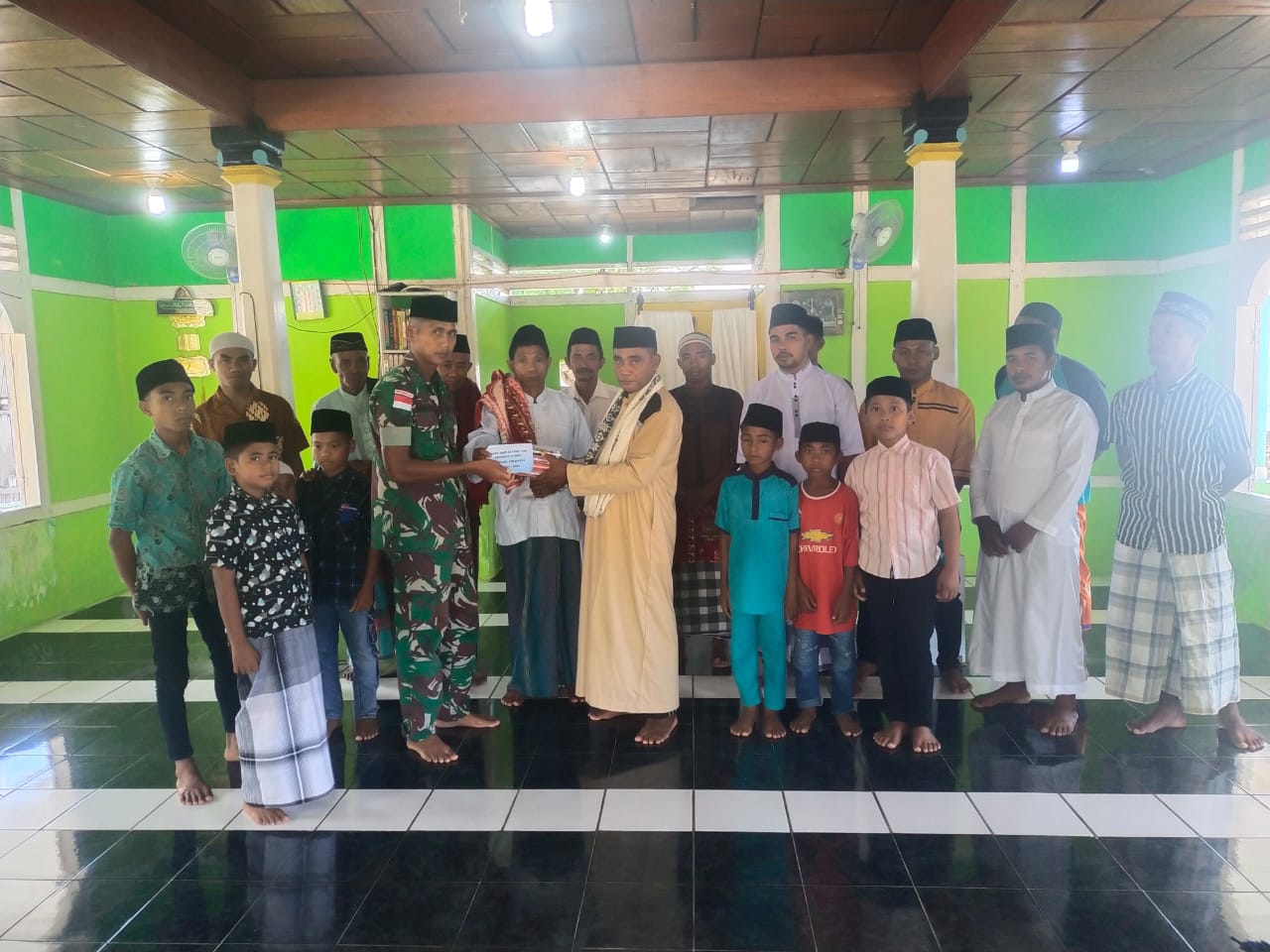 Maluku, Anggota Satgas Kodim Maluku Batalyon Arhanud 11/WBY Pos Ramil Air Buaya Membagikan Kitab Suci Al-Qur’an kepada pengurus TPQ di Desa Balpetu Kecamatan Kepala Madan Kabupaten Buru Selatan-Maluku, Senin (27/6/2022).