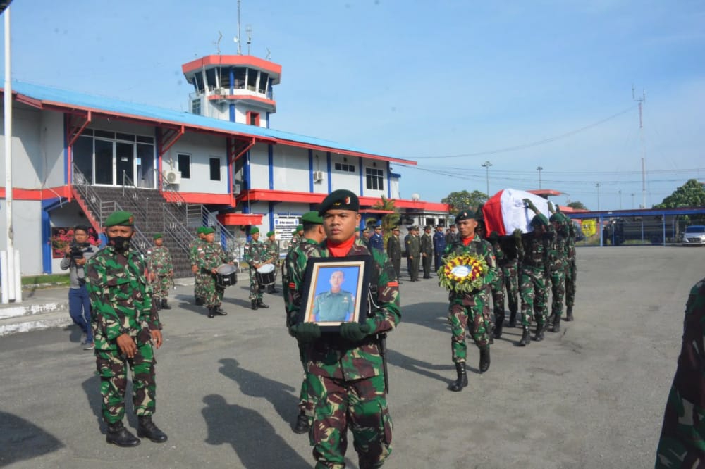 “Hari ini kita lepas jenazah secara militer sebagai bentuk penghormatan terakhir untuk almarhum dan selanjutnya diterbangkan ke rumah duka di kampung halamannya di Kediri, Provinsi Jawa Timur,” ucap Danrem.