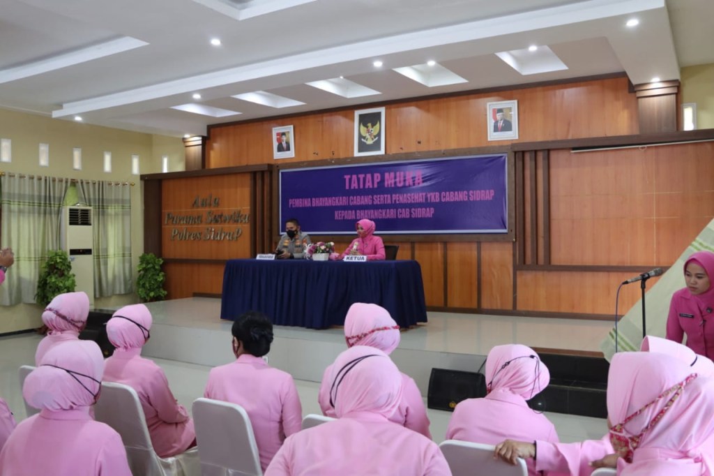 SIDRAP – Kapolres Sidrap AKBP Erwin Syah. S.I.K selaku pembina Bhayangkari Cabang Sidrap menggelar acara tatap muka sekaligus memberikan arahan dan pembinaan kepada Bhayangkari Cabang Sidrap dan Ibu Yayasan Kemala Bhayangkari serta guru TK dan TPA yang di laksanakan di Aula Parama Satwika Mapolres Sidrap. Senin (11/07/22).