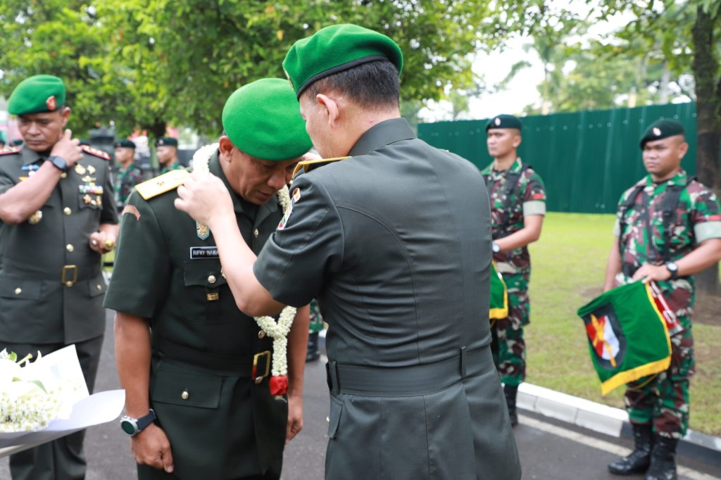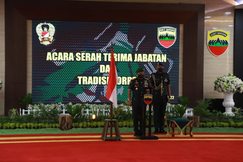 Medan – Pangdam I/BB, Mayjen TNI Achmad Daniel Chardin SE MSi memimpin langsung acara serah terima jabatan Kepala Staf Komando Daerah Militer I Bukit Barisan dari Brigjen TNI Purwito Hadi Wardhono SE MHum kepada Brigjen TNI Rifky Nawawi SE, SIP, di Aula AH. Nasution, Markas Kodam I/BB, Jum’at (22/07/2022).