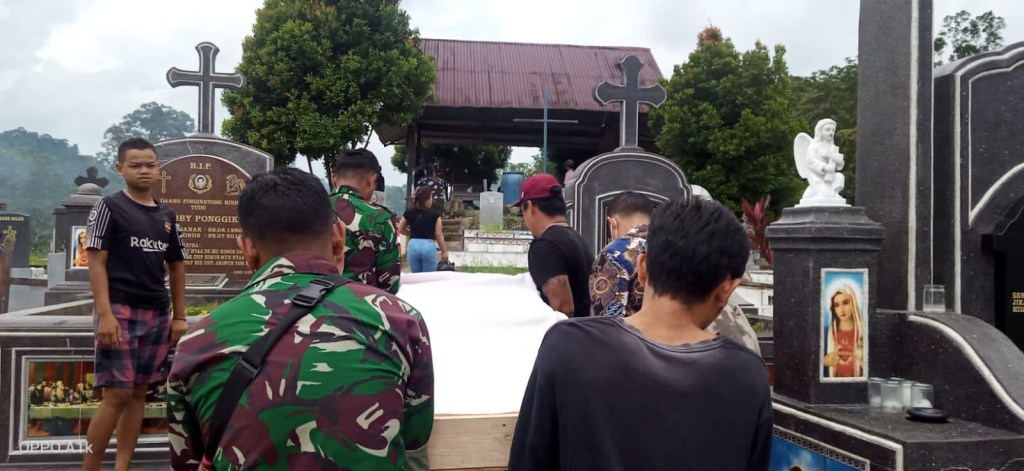 Bengkayang, Kalbar – Sebagai bentuk kepedulian dan rasa empati terhadap sesama, Satgas Pamtas Yonif 645/Gty membantu proses pemakaman Sdra. Junaidi yang meninggal karena sakit komplikasi, dipimpin langsung Pabintal Satgas Letda Inf Andi Muh Pagelipu beserta 3 orang anggota terjun langsung untuk membantu dalam prosesi pemakaman jenazah mulai dari proses ibadah pelepasan jenazah hingga ke tempat penguburan dengan membantu memikul Peti jenazah di Gang Pinang Merah Dsn. Jagoi Desa. Jagoi Babang, Kec. Jagoi Babang Kab. Bengkayang. Minggu, (31/07/2022)