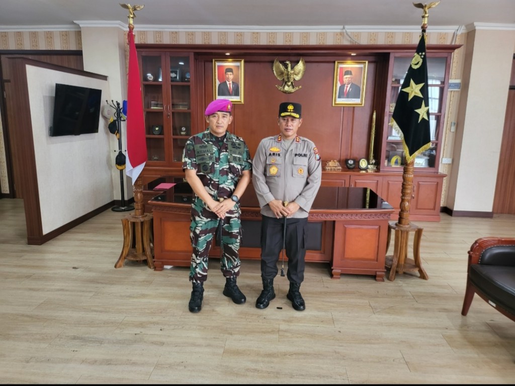 Batam – Komandan Batalyon Marinir Pertahanan Pangkalan (Danyonmarhanlan) IV Tanjungpinang Letkol Marinir Kemal Mahdar, S.H.,M.Tr.Opsla melaksanakan Silaturahmi ke Markas Komando (Mako) Polda Kepulauan Riau. Jum’at (11/08/2022).