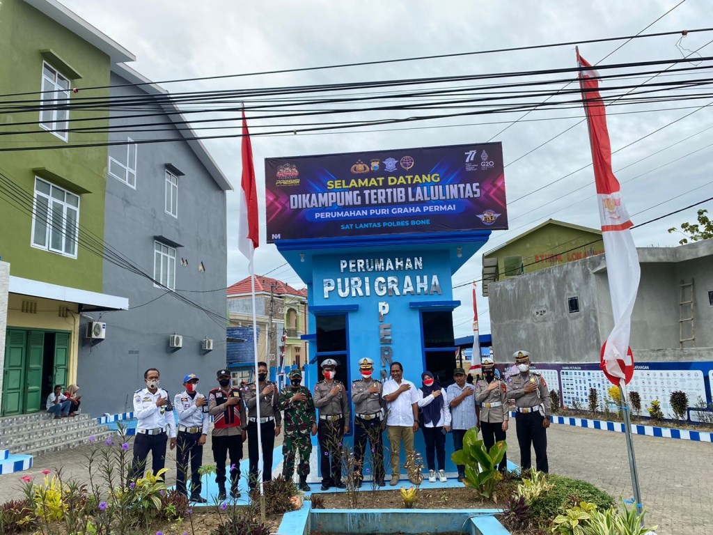 BONE- Tim Subdit Kamsel Ditlantas Polda Sulsel dipimpin Kasi Dikmas Kompol Bagus Putut melaksanakan Supervisi di Kampung Tertib Lalu Lintas wilayah Polres Bone, di Perumahan Puri Griya Permai Jalan Dr. Wahidin Sudirohusodo Kelurahan Macanang, Kab. Bone, Rabu (24/8/2022).