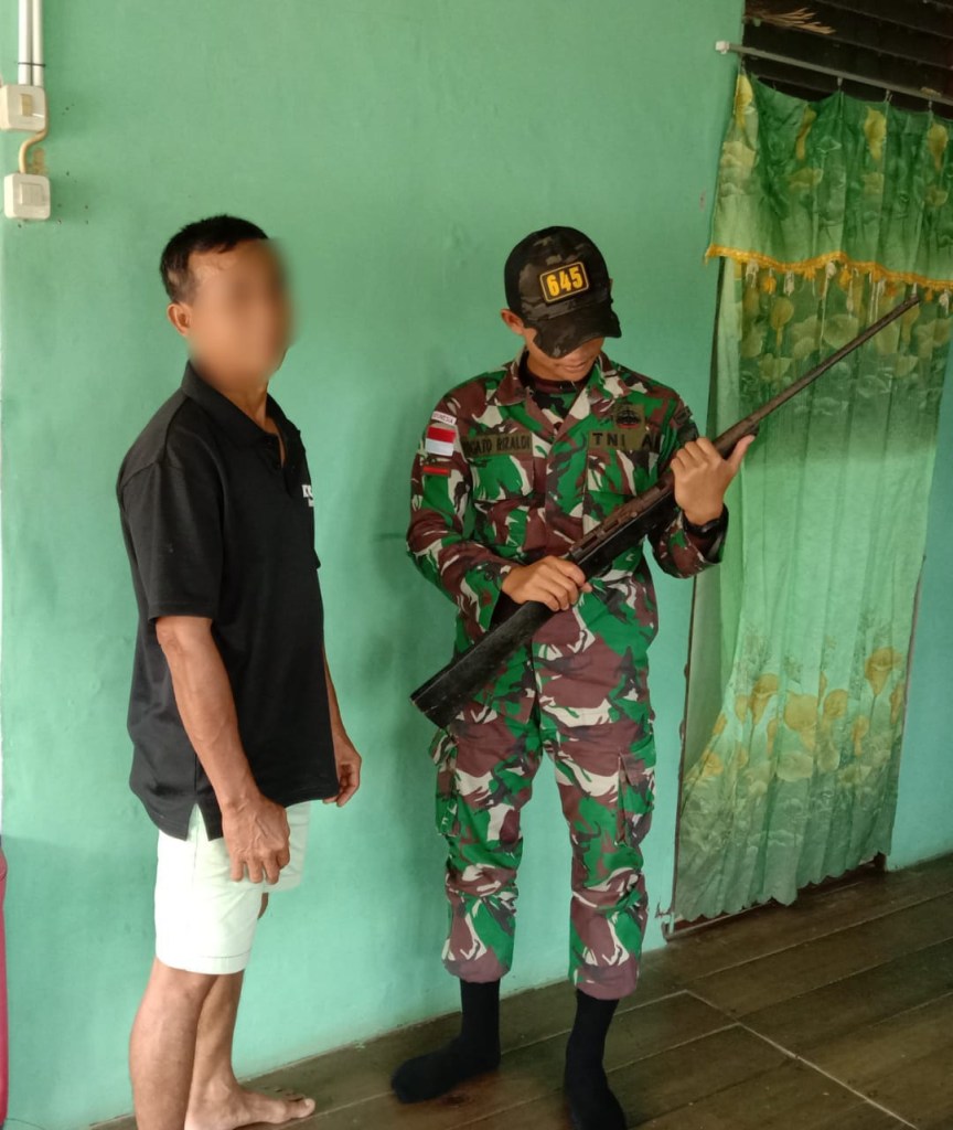 Penyerahan senpi ini bermula ketika 2 (dua) orang personil Pos Simpang 3 (tiga) Lokpon Satgas Pamtas Yonif 645/GTY dipimpin Prada Yogato Rizaldi dan 1 (satu) orang anggota melaksanakan kegiatan Anjangsana ke rumah Bpk. SH sekaligus menanyakan Kesiapan anaknya (Jinggo 19 Thn) yang berencana ingin Mendaftar menjadi Anggota TNI-AD, sejak 2 (dua) bulan sebelumnya telah dibina Fisiknya atau Jasmaninya Oleh Anggota Pos Simpang 3 Lokpon Untuk Mendaftar TNI-AD. ujarnya