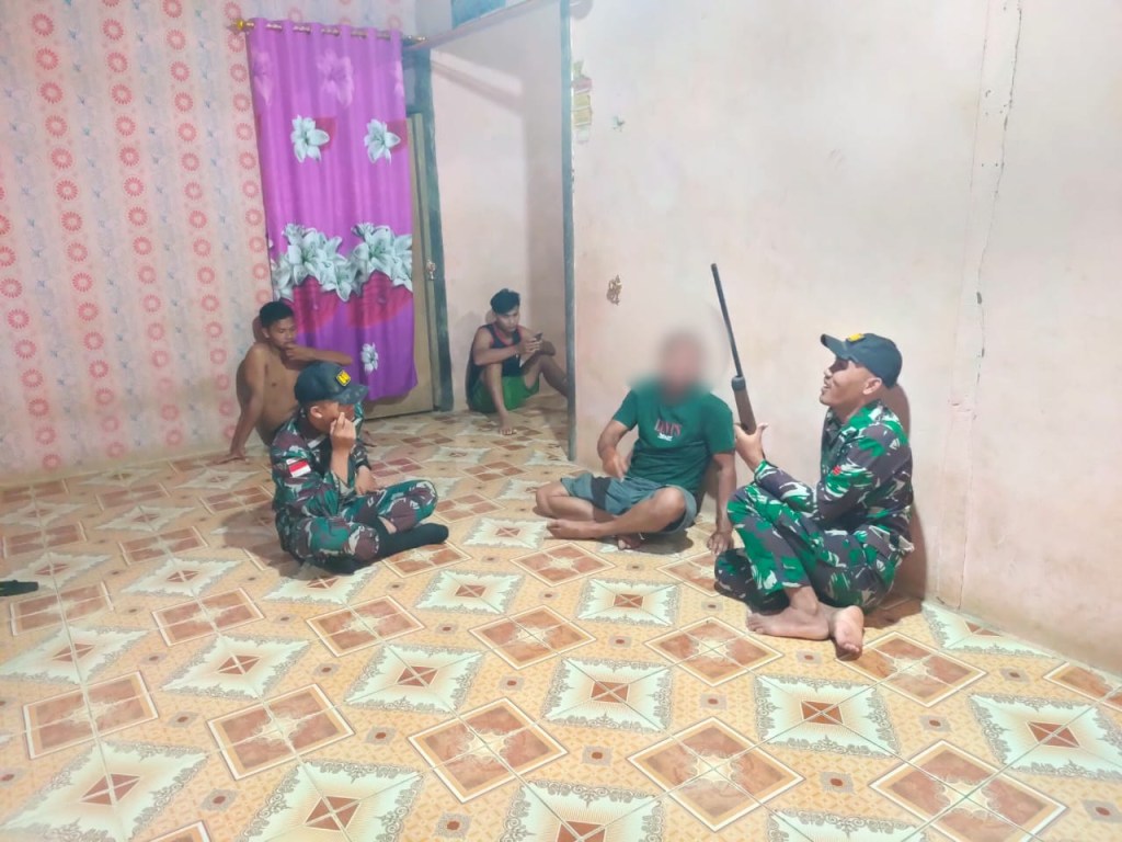 Sanggau, Kalbar] – Pembinaan teritorial (Binter) melalui kegiatan anjangsana, sosialisasi ke dusun-dusun atau kampung binaan yang terus dilakukan Pos Lubuk Tengah Satgas Pamtas Yonif 645/GTY di perbatasan RI-Malaysia sektor barat Kalimantan Barat, berhasil menggugah hati nurani Bapak berinisial LB (55), warga Dusun. Lubuk Sabuk Desa. Lubuk Sabuk Kec. Sekayam Kab. Sanggau. untuk menyerahkan 1 (satu) pucuk senjata api (senpi) rakitan jenis Lantak miliknya.
