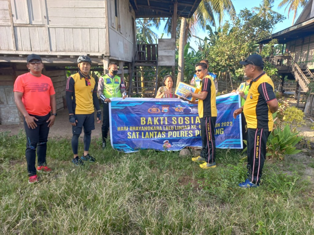 Dalam acara sepeda santai hut Lalulintas ke-67 tahun kata Kapolres Pinrang, personil TNI-Polri juga melakukan kegiatan pembagian bantuan sosial berupa paket sembako kepada warga yang kurang mampu sebanyak 9 (sembilan) orang yaitu bapak Mansyur (57), Ancu (38), ibu Rustina (50) bapak Laodi (55), ibu Sadaria (53) bapak Baba Ali (75) ibu Kaminang (64) ibu Imandi (54) dan ibu Rusnah (35).”