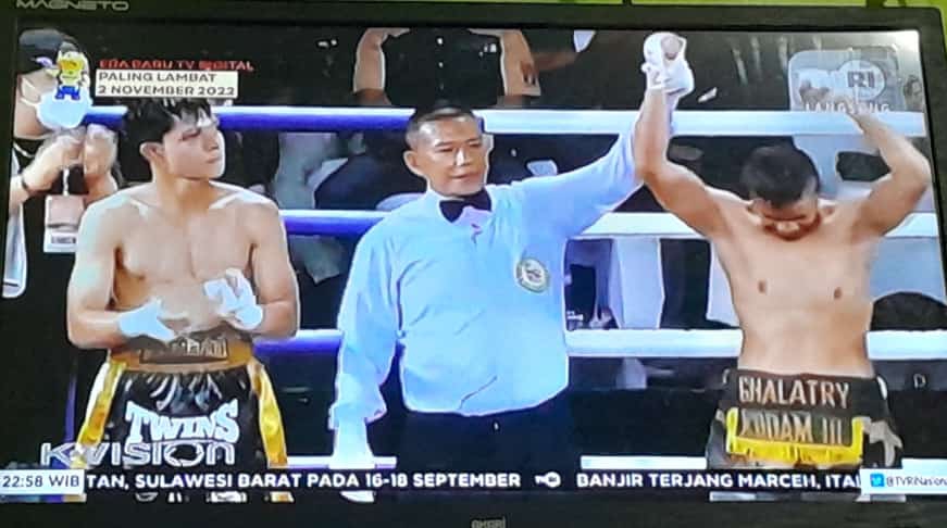 Jakarta, – Sertu Ghalatry Sonny, petinju Profesional Kelas Bulu Junior 55,3 Kg semalam di Gedung Balai Sarbini Jakarta Selatan, berhasil mengharumkan nama Bangsa dan Negara setelah bertanding Fight selama 8 ronde melawan Shanon Chonkam petinju andalan Negara Gajah Putih Thailand dengan meraih Gelar Juara Internasional Sabuk Emas Asian Boxing Federation (ABF) dan Sabuk Emas Kasad 2022.