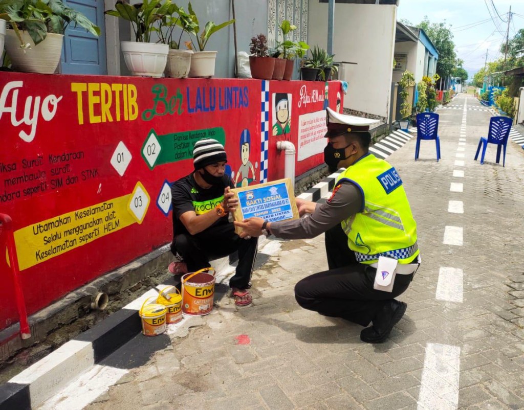 Kapolres Sidrap AKBP Erwin Syah. S.I.K melalui Kasat Lantas Polres Sidrap AKP Mahrus Ibrahim. S.Sos mengatakan, pihaknya kali ini memberikan bantuan kepada pelukis mural penyandang desabilitas (cacat)