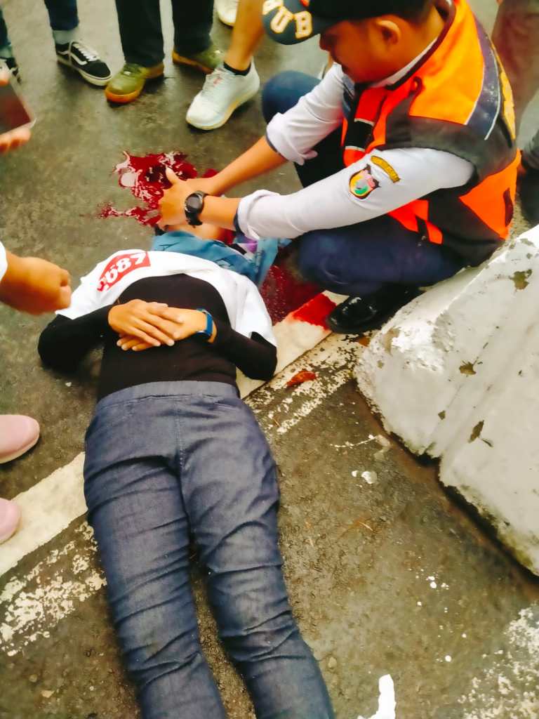 Nahas bagi peserta perempuan tersebut.setelah terlempar lalu Kepalanya membentur beton pembatas jalan di Jalan Jenderal Sudirman. Dua peserta lainnya hanya luka-luka.